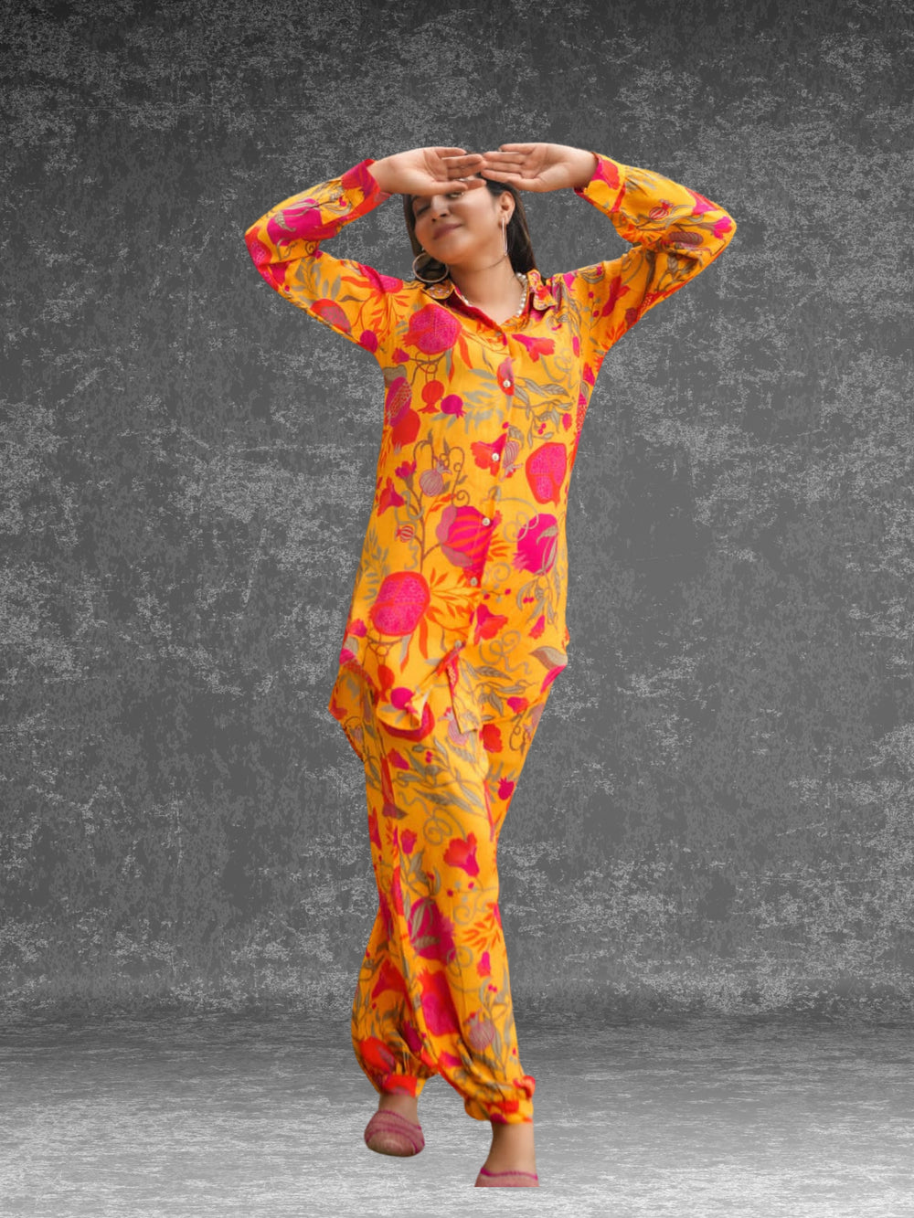 Unleash your vibrant style with our Maslin Cord Set! Featuring a stunning tie-dye design in patchy pink and blended hues, this set is a true fashion statement. The delicate beadwork on the collar adds a touch of elegance. Perfect for any occasion, this cord set offers both comfort and chic appeal. Shop now and add this unique piece to your wardrobe.